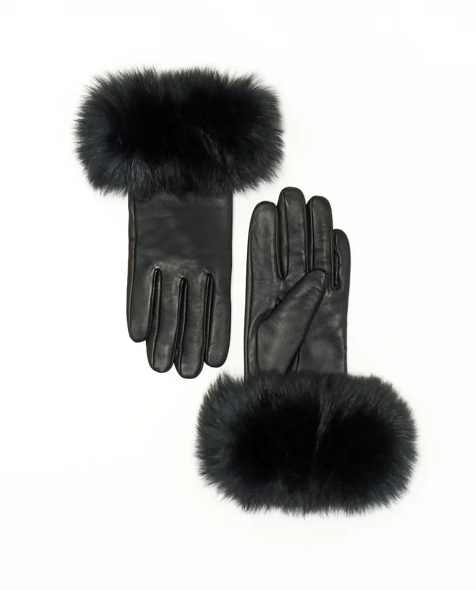 Черные кожаные перчатки с манжетами из черного лисьего меха Maximilian, черный