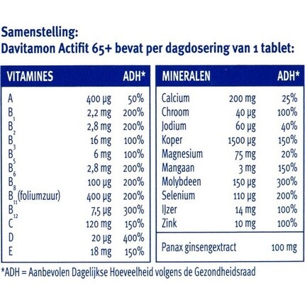 Davitamon Actifit 65+ - Мультивитамины для людей старше 60 лет - 70 таблеток - Добавка