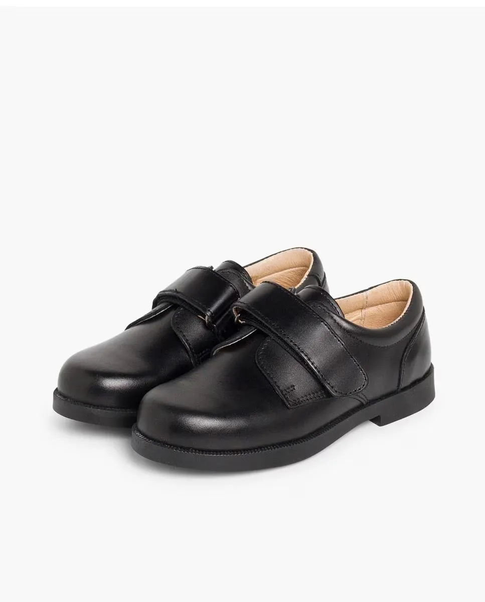 Блюхеры кожаные для мальчика с клейкой лентой Pisamonas, черный