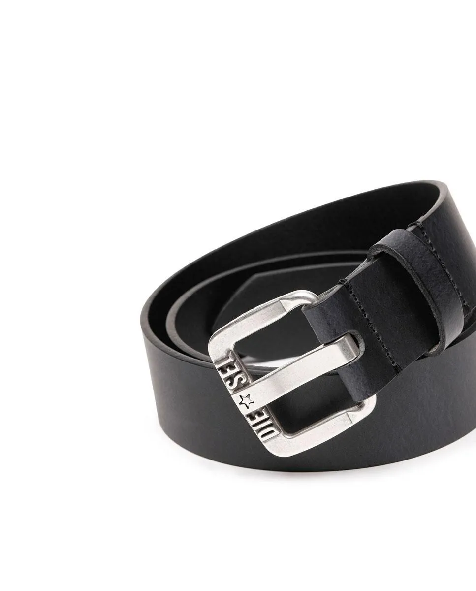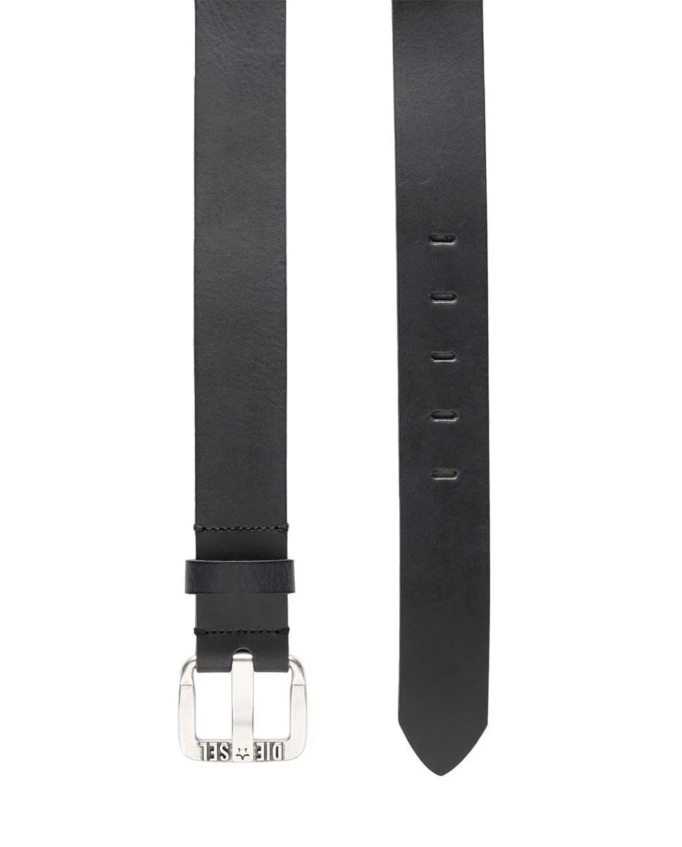 Мужской кожаный ремень с пряжкой с логотипом Diesel, черный