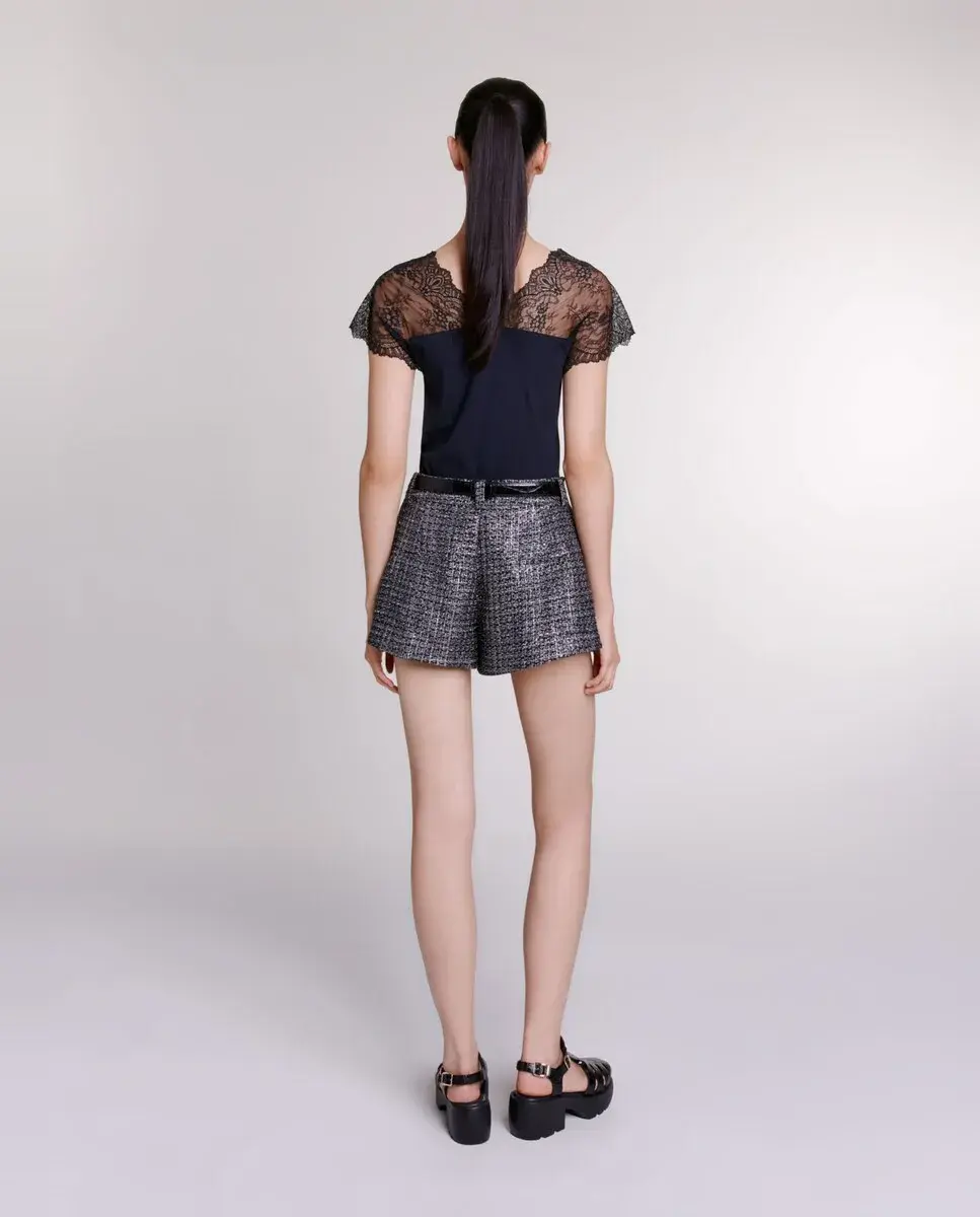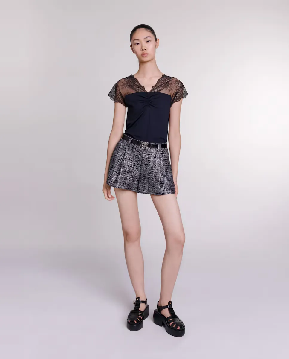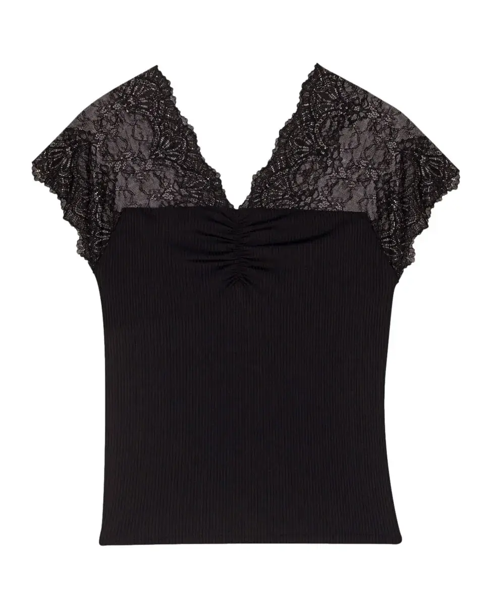 Женский топ в рубчик с кружевом Maje, черный