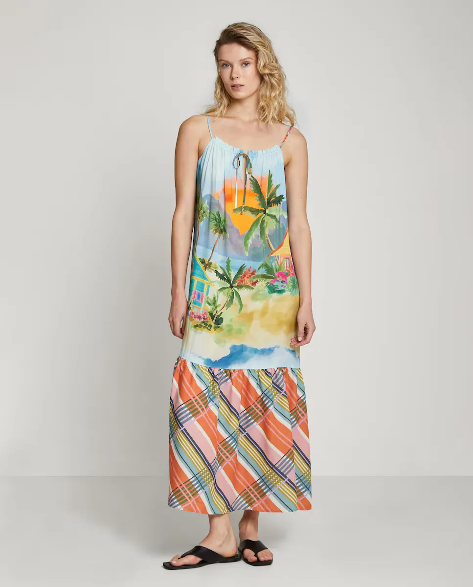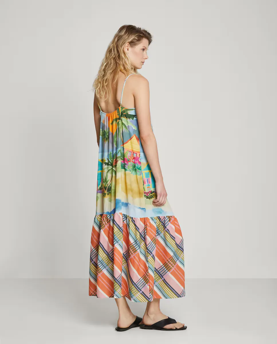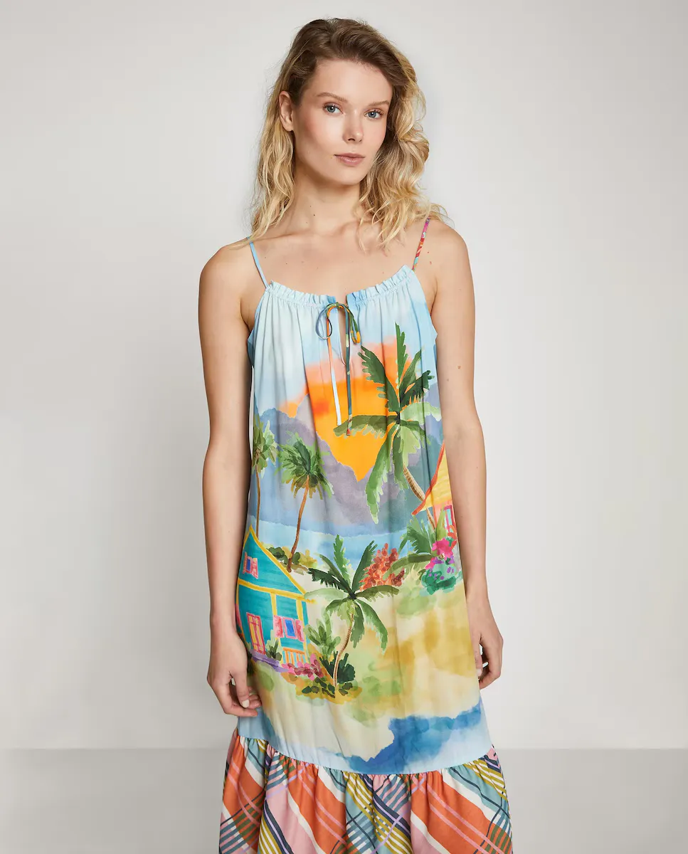 Длинное платье на бретелях с карибским принтом Trucco, мультиколор