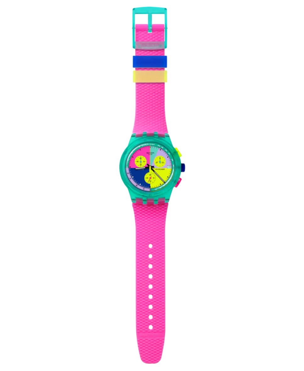 Розовые часы со стрелкой Swatch Neon Flash и пластиком, розовый