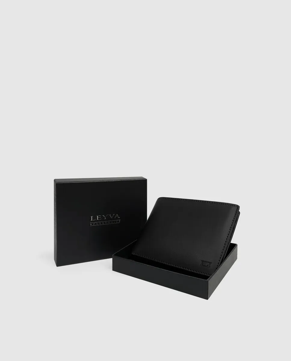 Мужской кошелек из кожи наппа черного цвета Leyva, черный