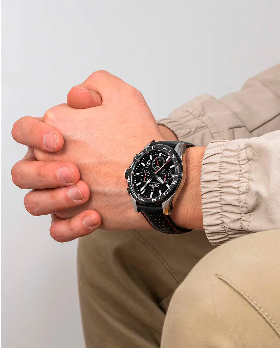 F20561/4 Timeless Chronograph Черные кожаные мужские часы Festina, черный