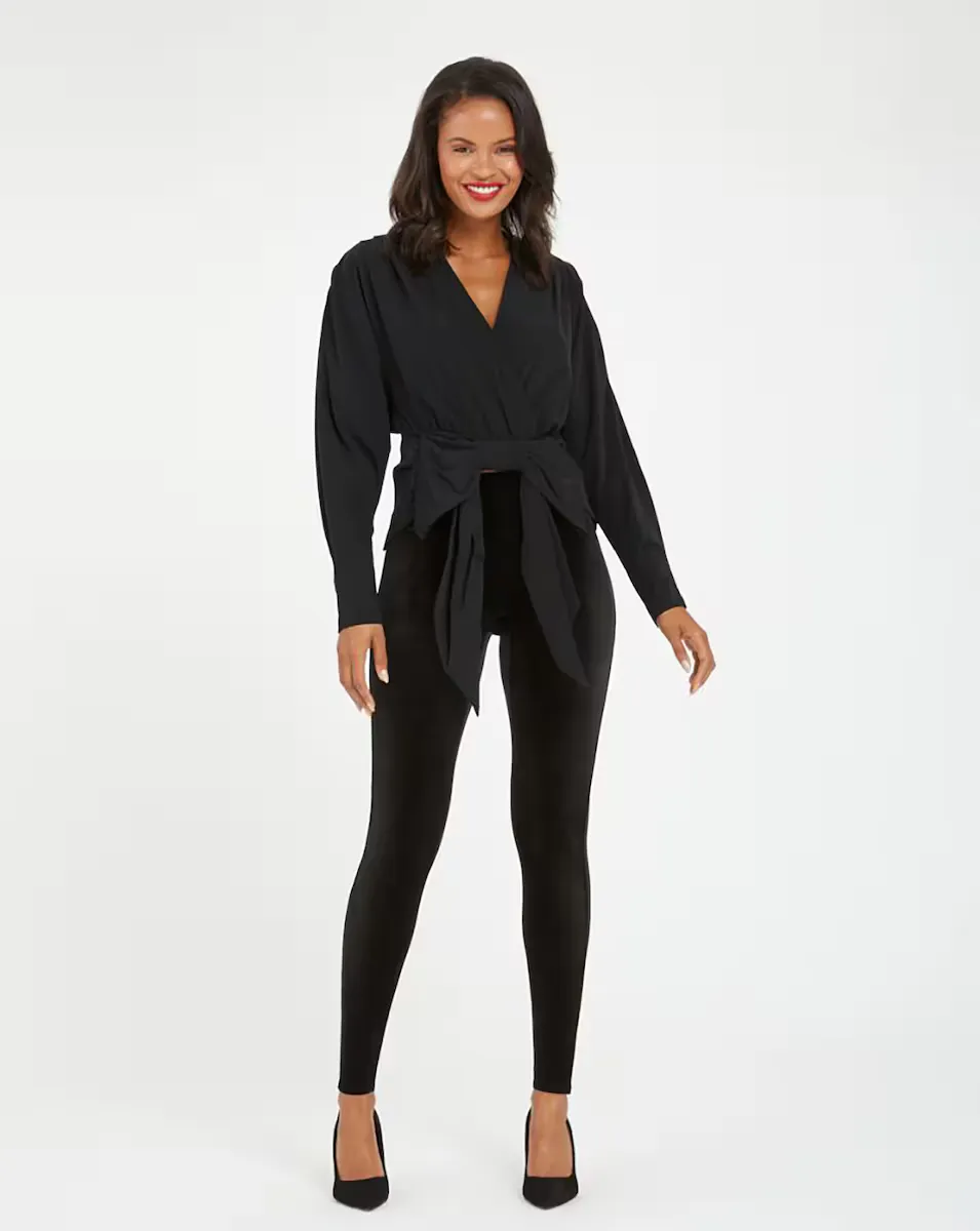 Женские бархатные моделирующие леггинсы Spanx, черный