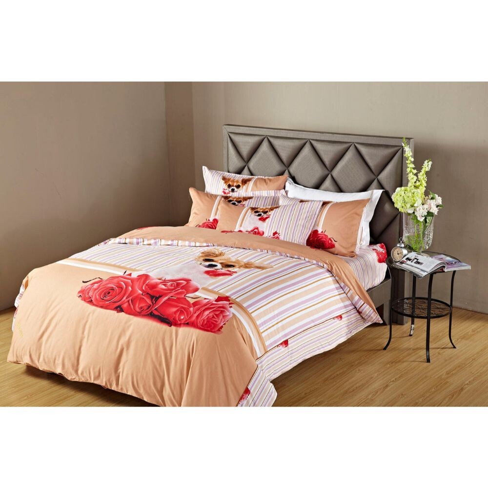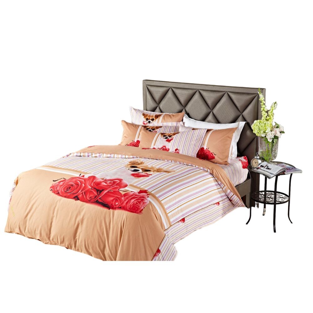 Оживите настроение своей спальни с помощью этого современного игривого и романтического комплекта постельного белья с ярким принтом очаровательной собаки и роз. Мягкость 100% чесаного хлопка и оригинальная подарочная упаковка делают эти комплекты постельного белья отличным выбором для подарка.