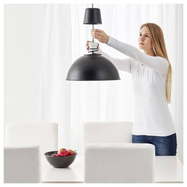 Длину шнура потолочного светильника можно отрегулировать в соответствии с вашим домом. Просто поднимите купол и протяните внутри него провод.