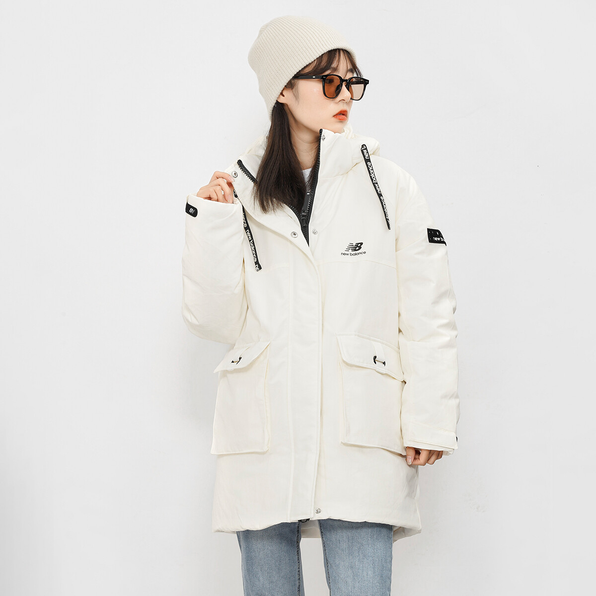 Пуховик женский молочно-белый New Balance