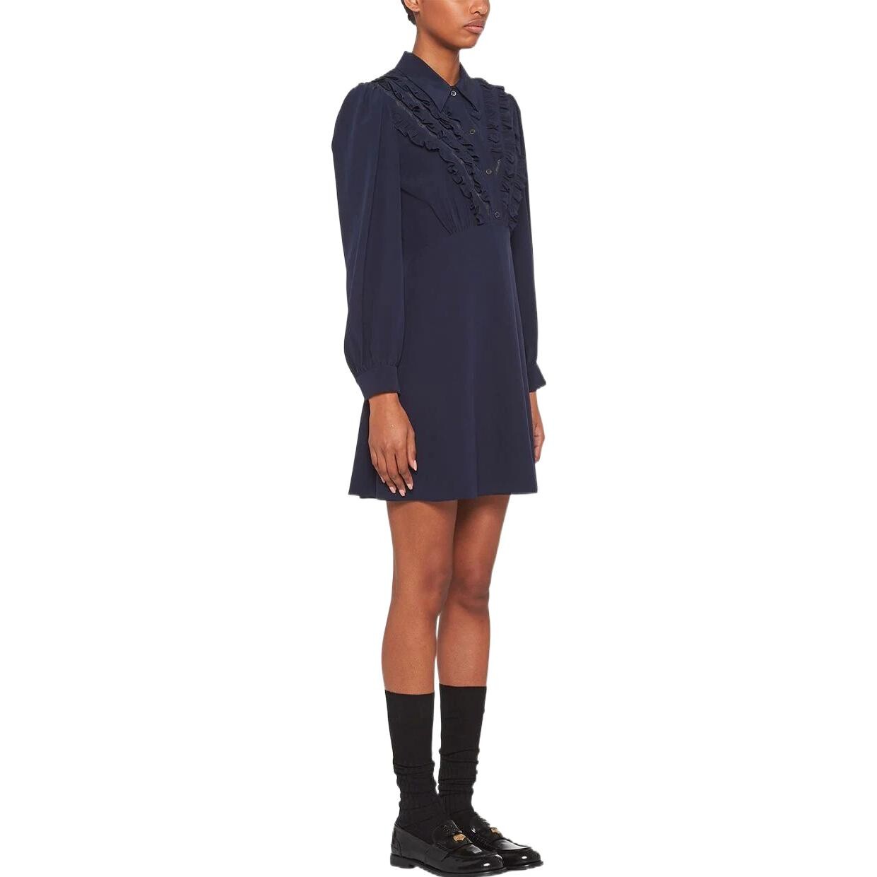 Платье с длинными рукавами женское синее Miu Miu