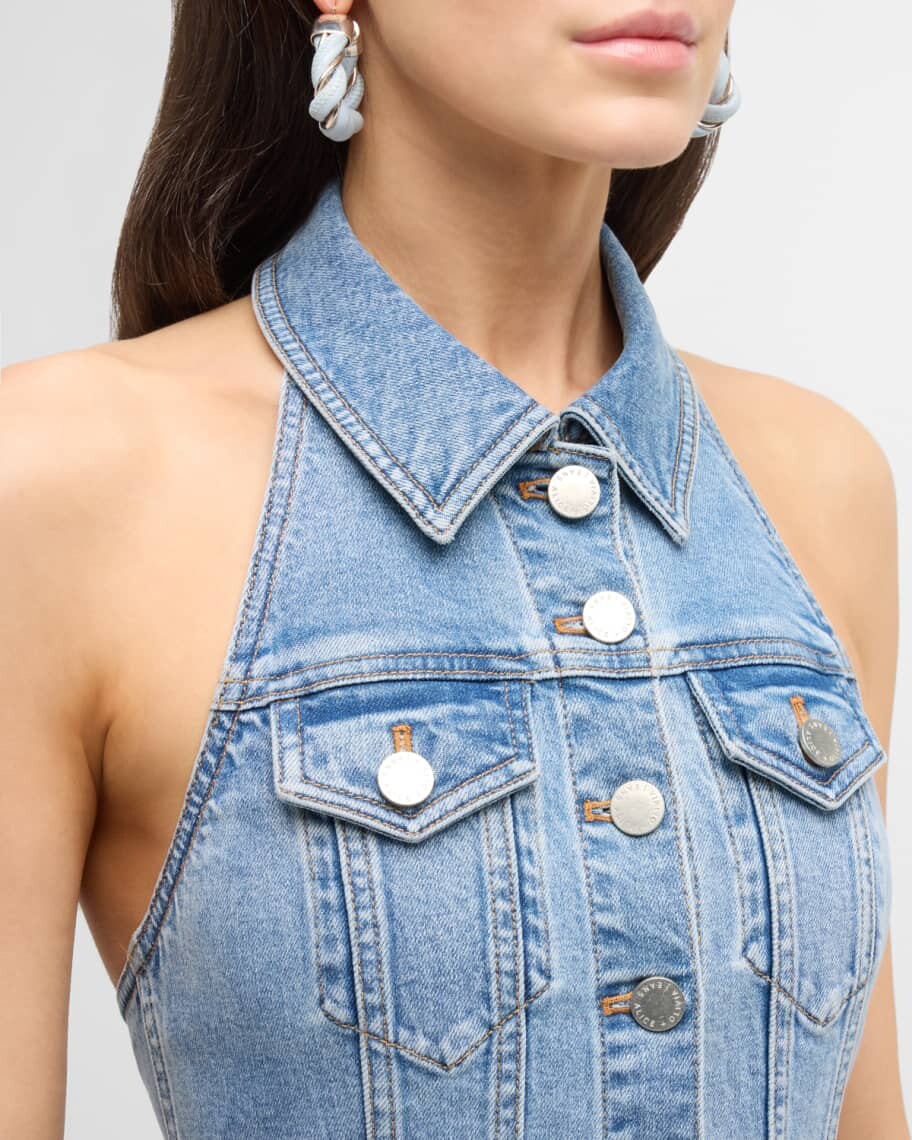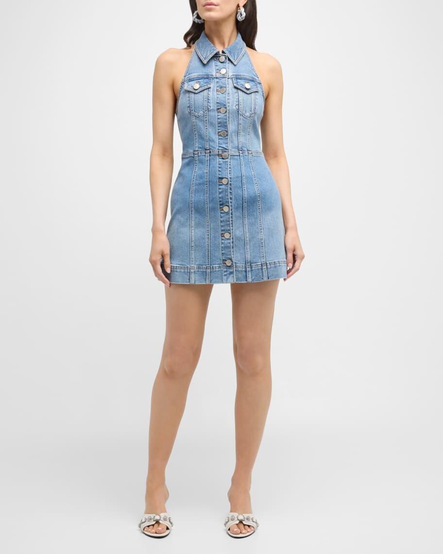 Джинсовое мини-платье Kendall с лямкой на шее Alice + Olivia