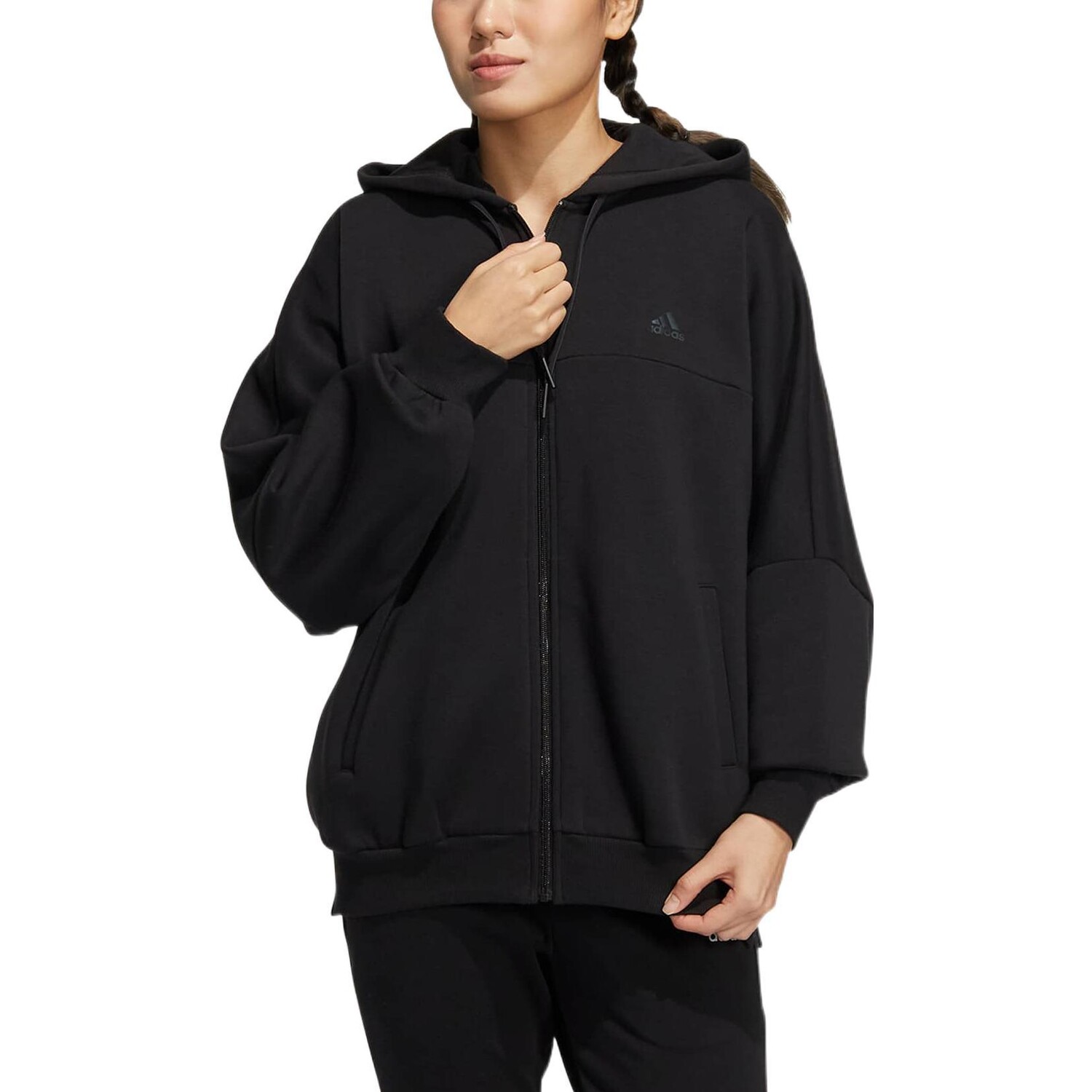 Толстовка с капюшоном Wording Oversize Fit Full Zip с флисом, черная Adidas