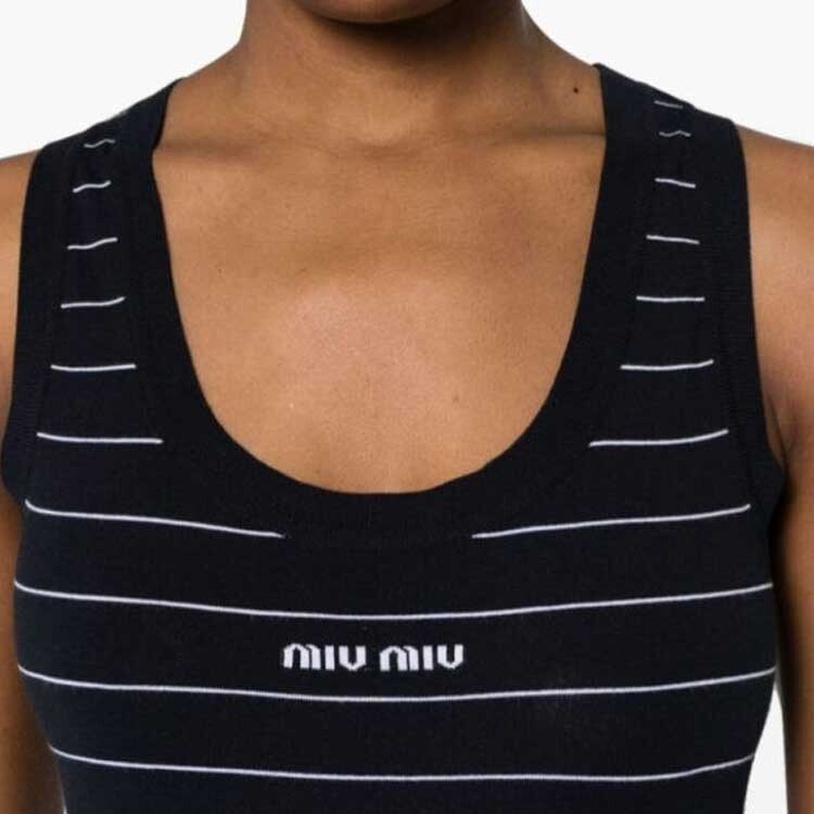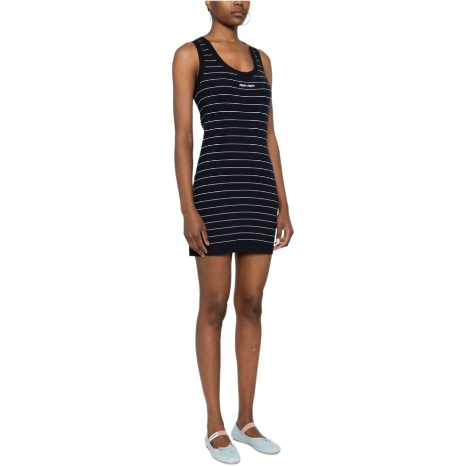 Платье без рукавов женское темно-синее Miu Miu