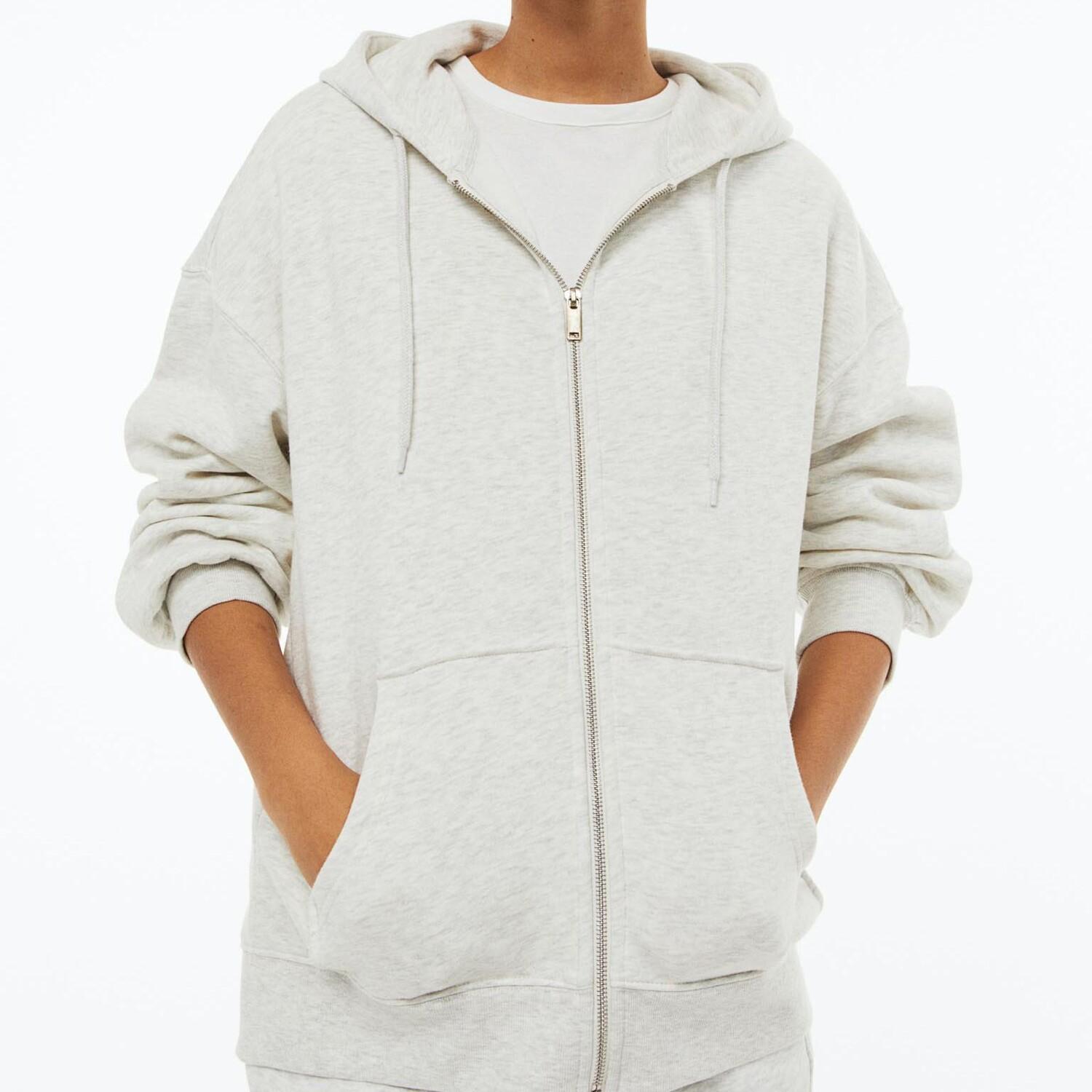 Толстовка H&M Oversized Zip-through, светло-серый