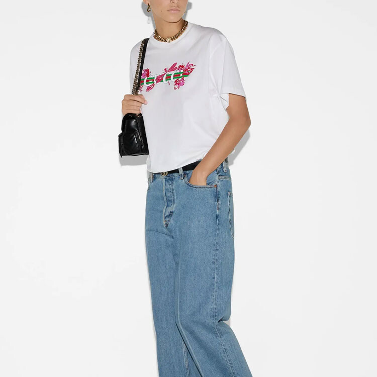 Футболка женская Gucci с красочным логотипом, белый
