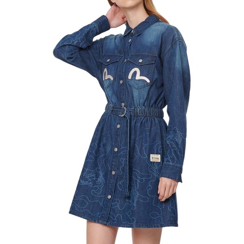 Платье с длинными рукавами женское джинсовое синее Evisu