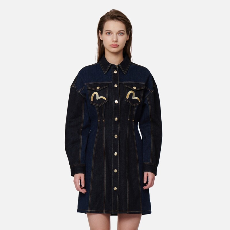 Платье с длинными рукавами женское джинсовое синее Evisu