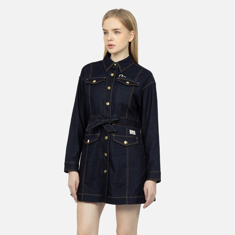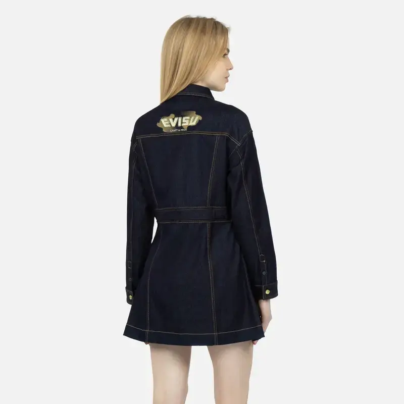 Платье с длинными рукавами женское джинсовое синее Evisu