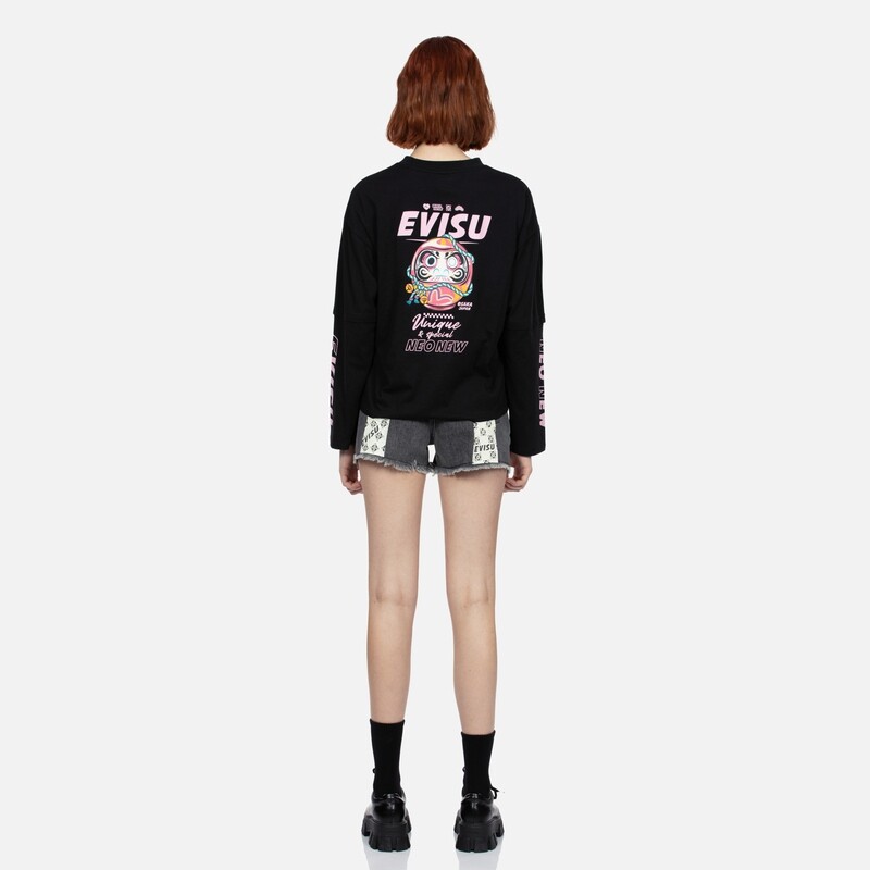 Джинсовые шорты женские ковбойские черные Evisu 22 172₽