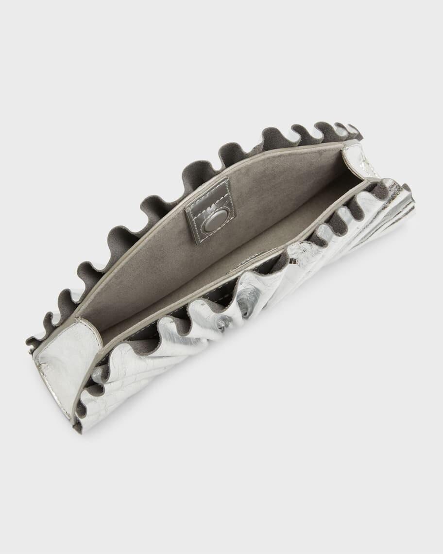 • Клатч Cult Gaia "Nala" в форме ракушки из плиссированной металлизированной телячьей кожи, ткани и искусственной кожи (полиуретана).