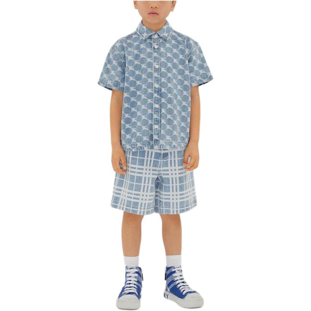 Рубашка детская Burberry с узором, светло-голубой