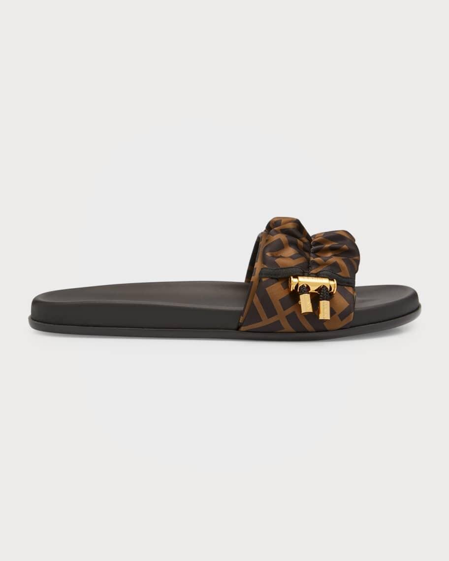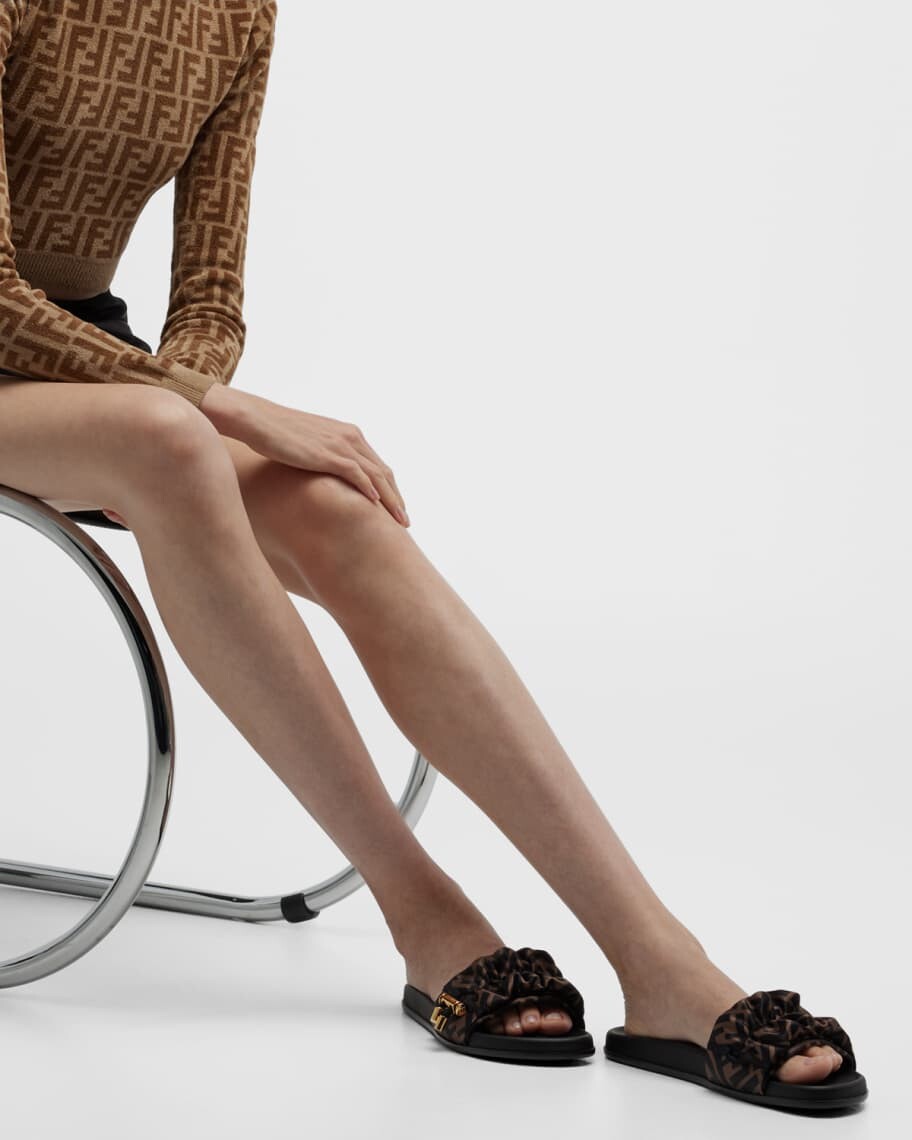 • Сандалии из ткани Fendi "Illusion" FF с рюшами и принтом логотипа FF.