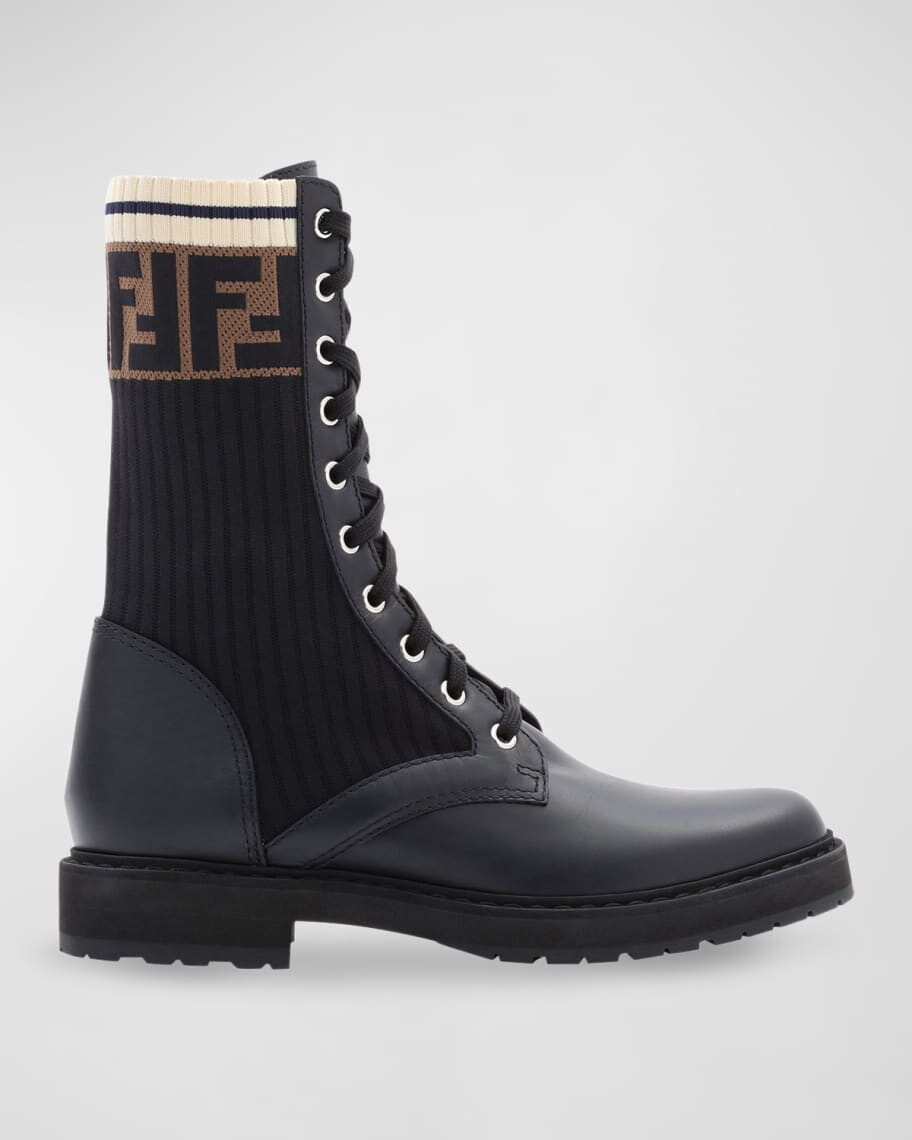 • Кожаные армейские ботинки Fendi с верхом в форме носка и тиснением FF на манжетах.