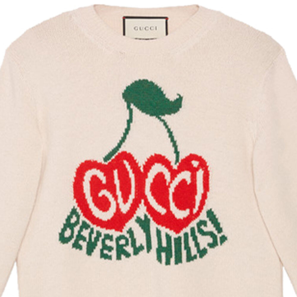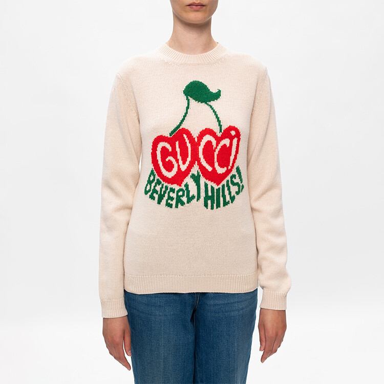 Свитер женский Gucci Cherries Logo, бело-бежевый