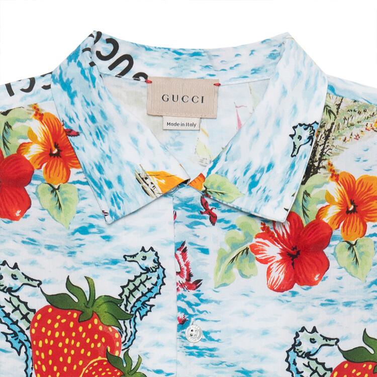 Рубашка детская Gucci с принтом, голубой / красный / зеленый