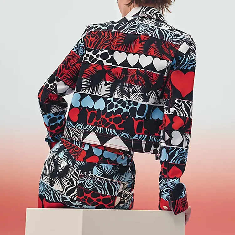 Куртка джинсовая женская Hermes, черный / белый / красный
