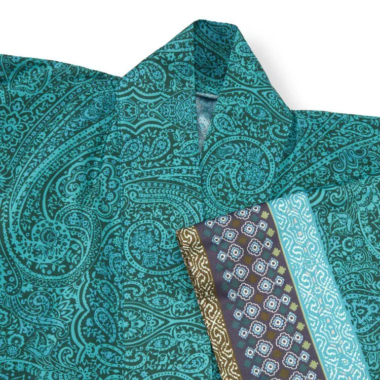 Кимоно Maser из драгоценного атласа из чистого хлопка с плотностью 110 нитей на см² из коллекции Granfoulard Autumn Winter, вдохновленной чудесами, которые природа дарит нам в зимнее время года. Элегантный и изысканный мотив пейсли интерпретируется богатыми деталями и извилистыми линиями, которые подчеркиваются хроматическим деграде. Разноцветная оборка чередуется с центральной частью рисунка тон в тон, создавая однородный и гармоничный эффект. Очень высокое качество печати благодаря твердым красителям, которые сохраняют яркость цветов неизменной с течением времени. Упакуйте в индивидуальную коробку для дизайна. Этот продукт был протестирован на наличие опасных веществ и сертифицирован в соответствии со СТАНДАРТОМ 100 от OEKO-TEX 1002995.O CENTROCOT.