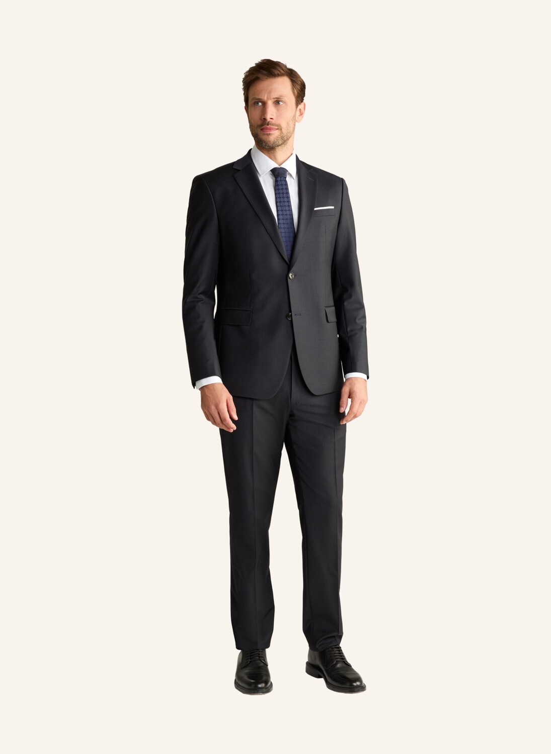 Модульные брюки Brad от JOOP впечатляют своей эластичной смесовой шерстью! как стильный партнер по стилю. Глажные складки и задние карманы на пуговицах с окантовкой расставляют классические акценты, дополненные элегантной строчкой AMF. Застежка на двойной крючок и формирующие швы удобно дополняют дизайн. Идеально сочетается с курткой Finch.