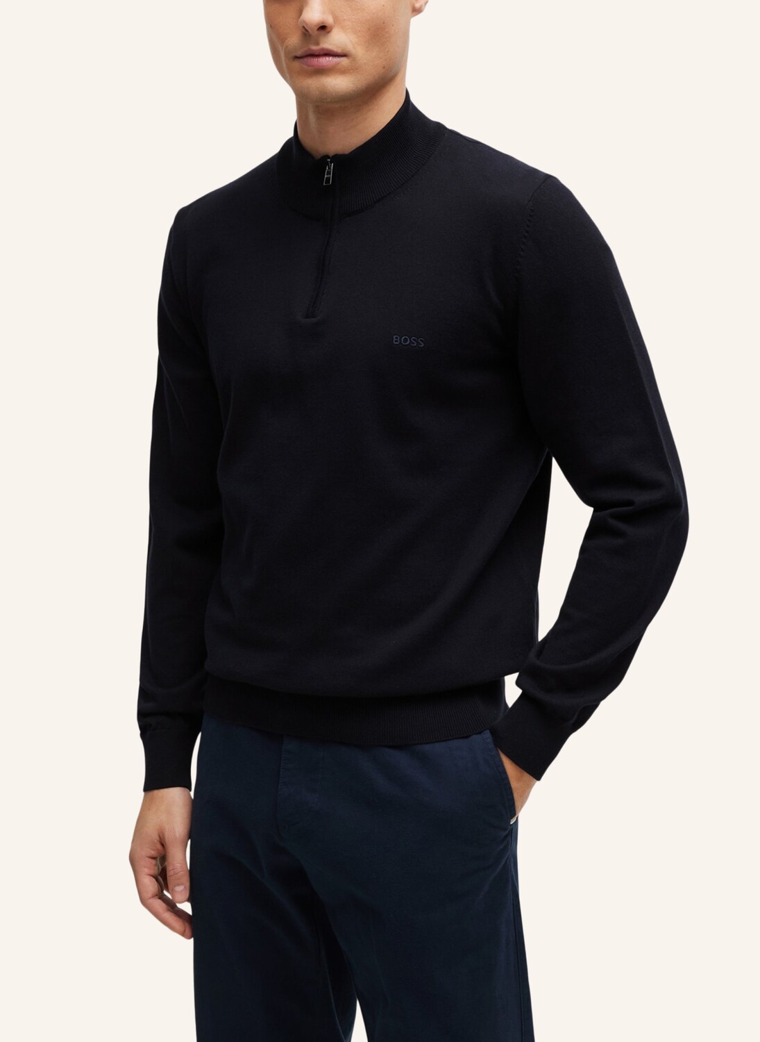 Элегантный свитер BOSS с молнией на воротнике. Модель связана из мягкой пряжи и украшена вышивкой логотипа BOSS на груди.