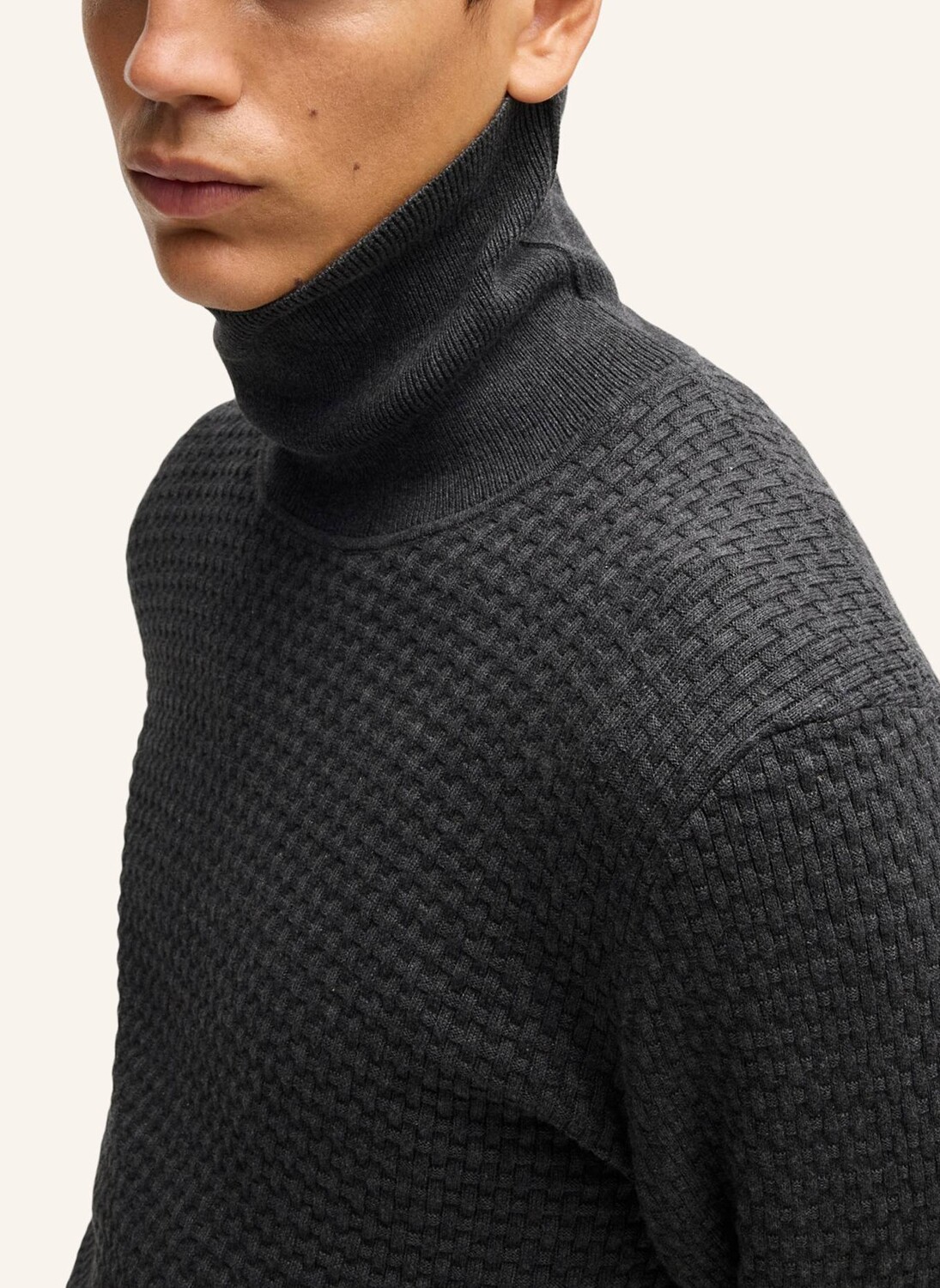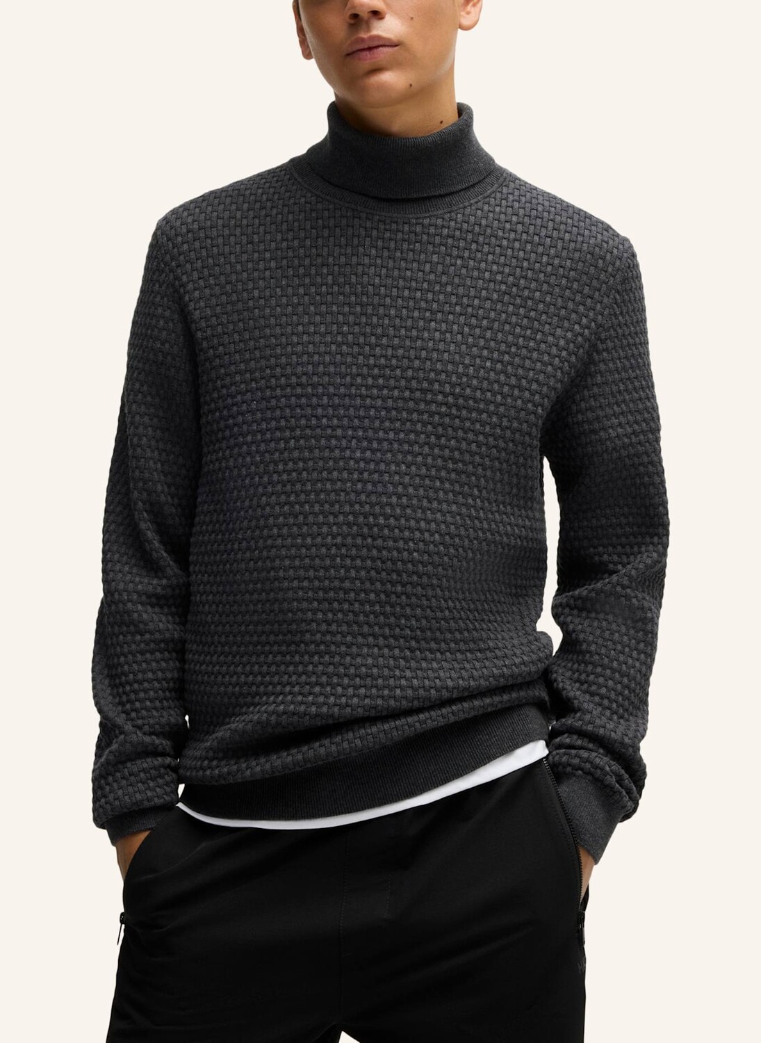 Свитер с высоким воротником HUGO Menswear идеально подходит для многослойных образов. Структурированный узор вязки придает изделию современный вид. Изготовлено из мягкой и дышащей пряжи.