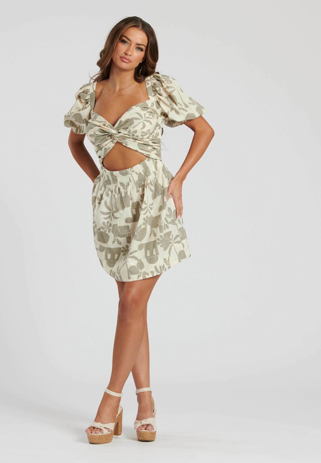 Повседневное платье TWIST FRONT PUFF SLEEVE South Beach, бежевый