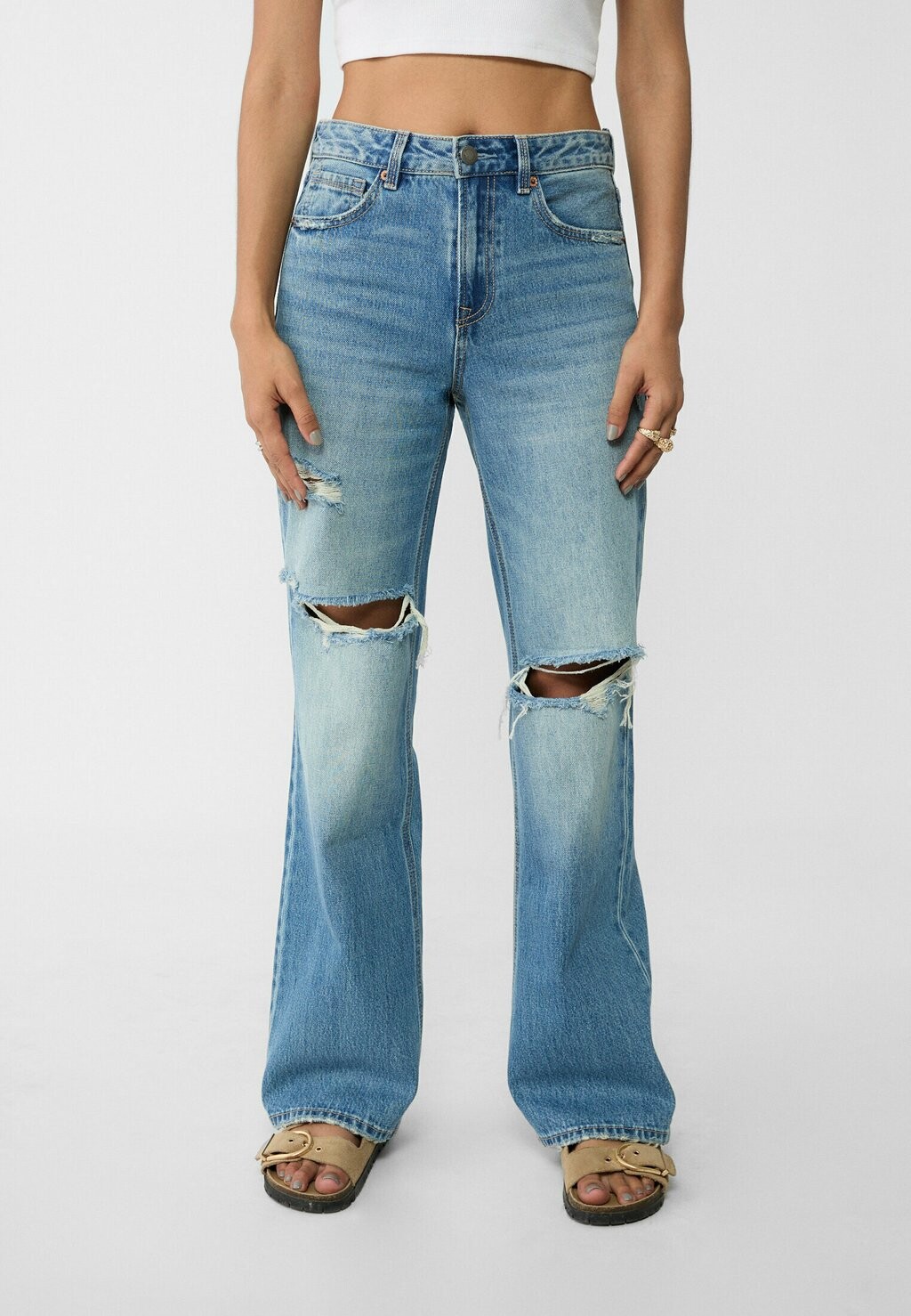 Джинсы-сигареты Stradivarius, цвет Raw Denim