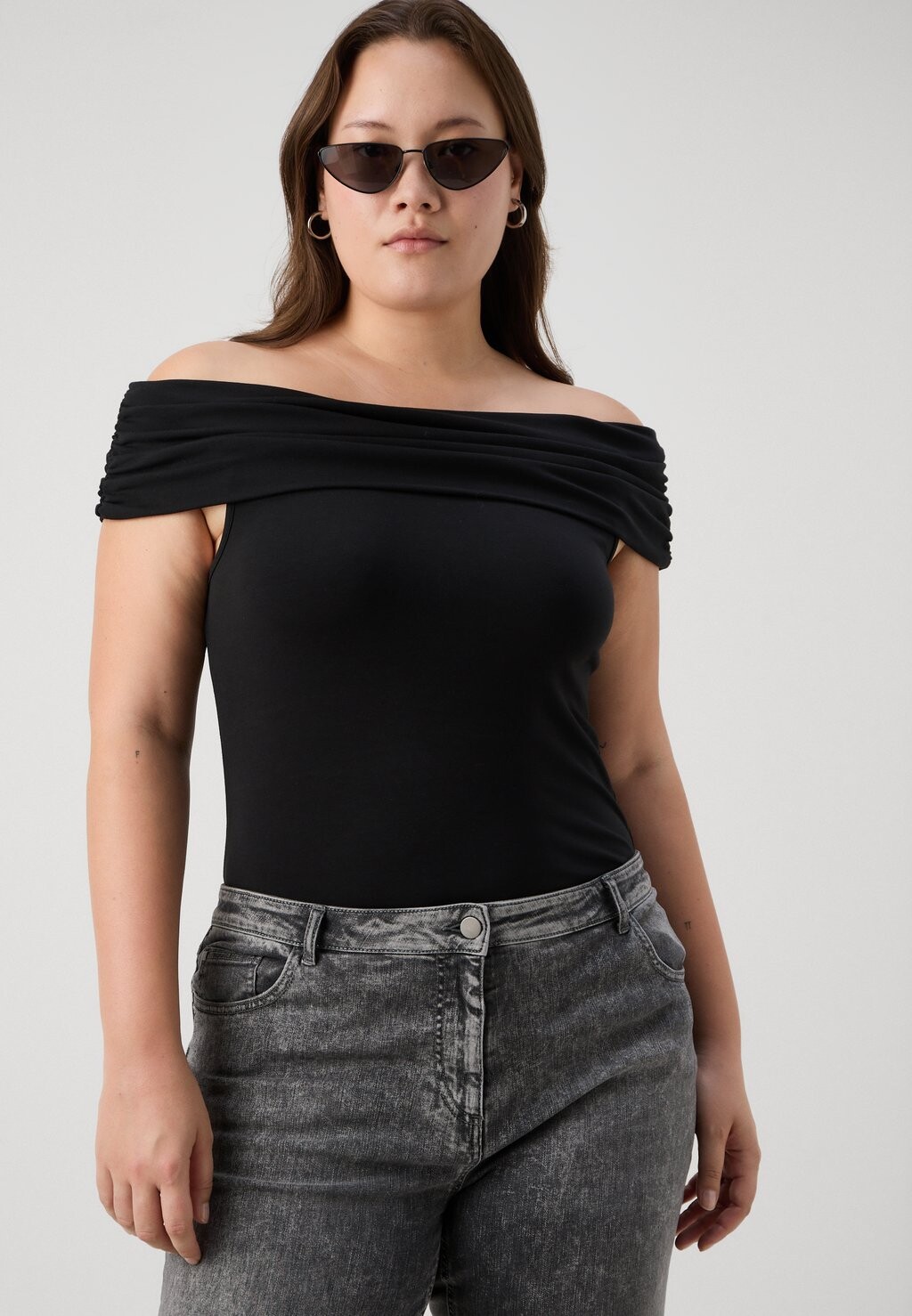 Футболки с принтом CARTIME OFF SHOULDER ONLY Carmakoma, черный