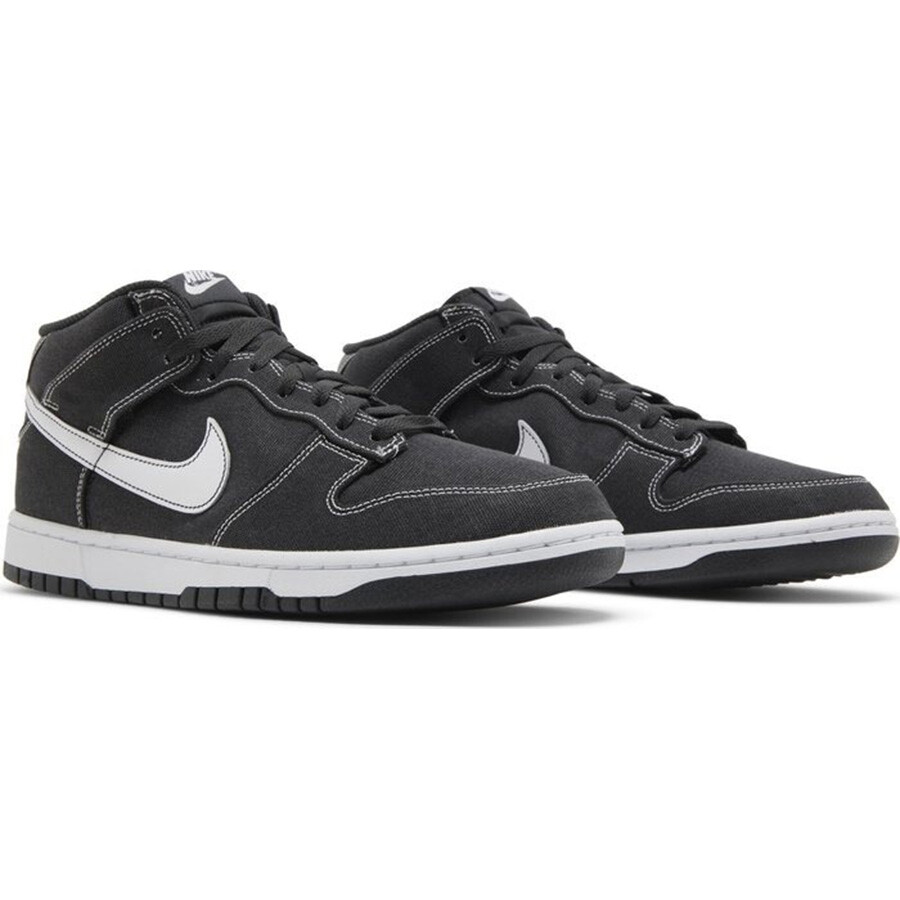Модель Nike Dunk Mid "Off Noir White" представляет собой классический баскетбольный стиль 80-х годов с обновленной конструкцией. Верхняя часть кроссовок, выполненная из черного канваса, украшена контрастной строчкой и белым кожаным логотипом Swoosh. Традиционный брендинг Nike расположен на тканом язычке и черном кожаном язычке на пятке. В основе кроссовок лежит стандартная подошва, выделенная белыми боковинами и прочной черной резиновой подошвой.