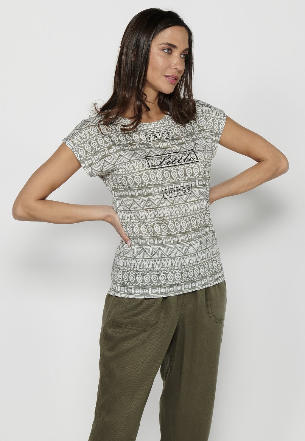 Футболки с принтом SHORT SLEEVE Koroshi, цвет Khaki