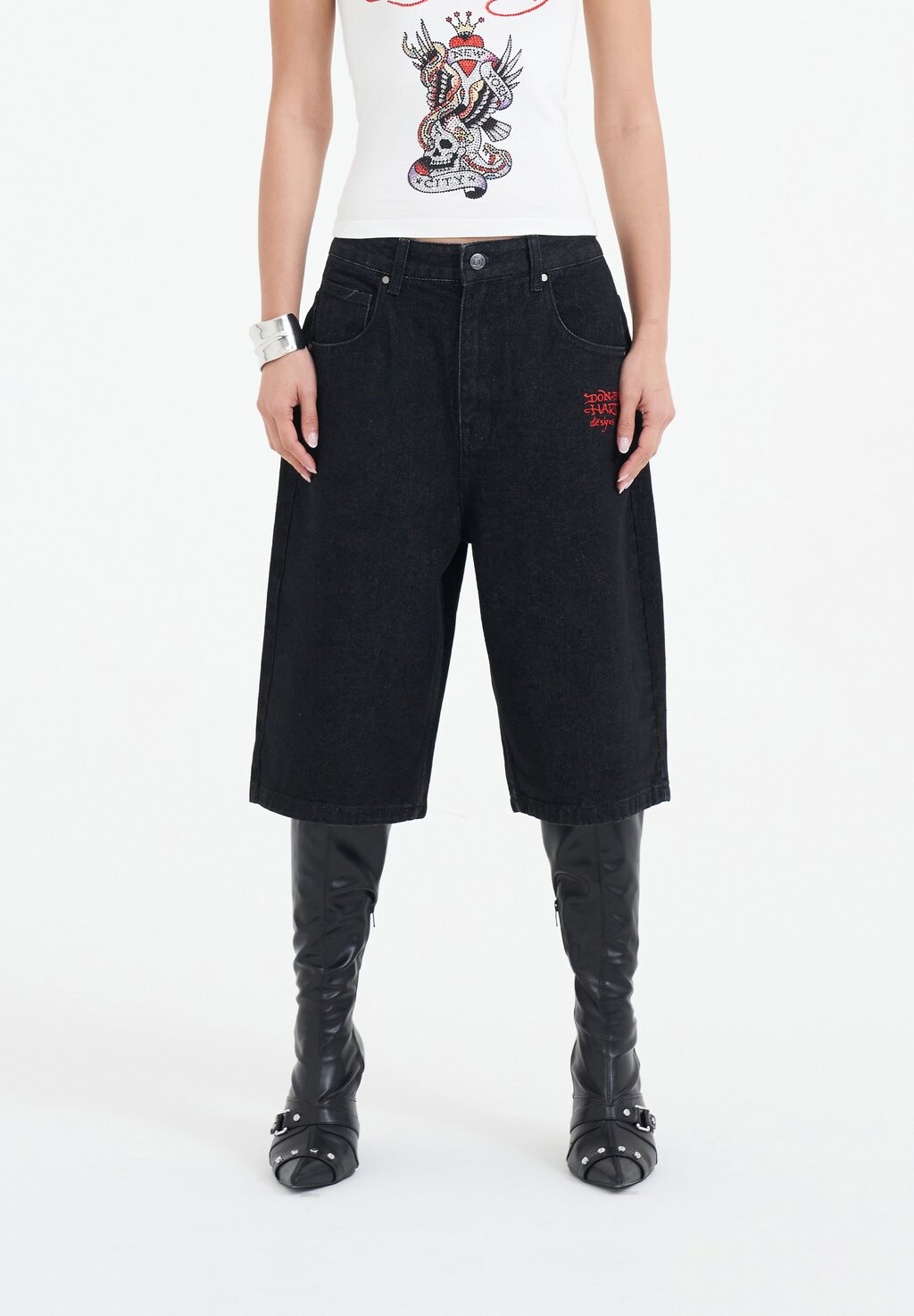 Джинсовые шорты LOVE RUNS WILD DIAMANTE JORTS Ed Hardy, черный 15 077₽