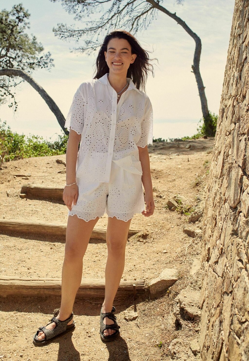 Рубашка-блузка COORD BRODERIE SHORT SLEEVE, REGULAR FIT Next, белый