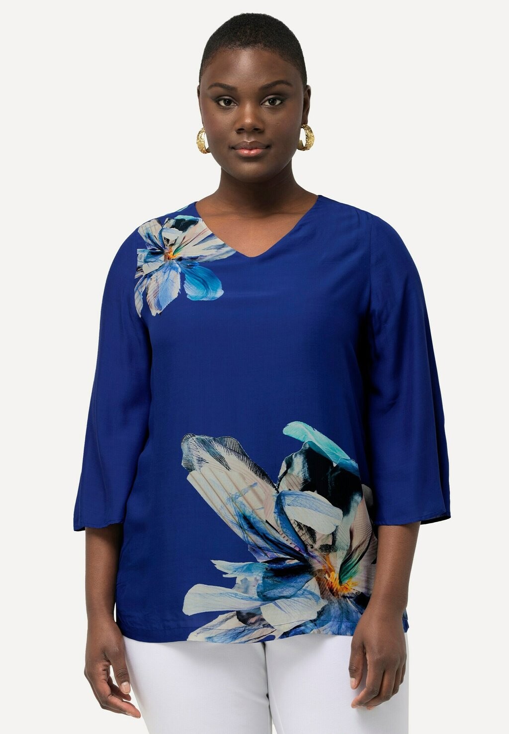 Блуза FLOWER PRINT Ulla Popken, темно-синий