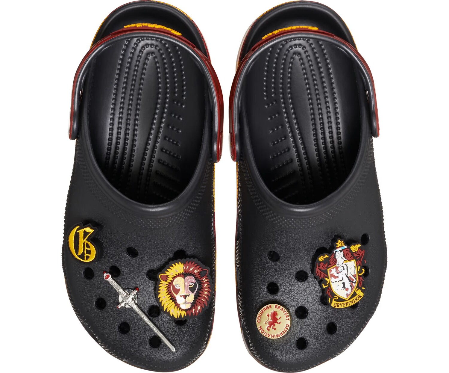 Решительность. Мужественность. Отвага. Покажите свою гордость за Гриффиндор в классических клогах с принтованной подошвой, вдохновленной красно-золотым шарфом Дома, и эксклюзивными брелоками Jibbitz.