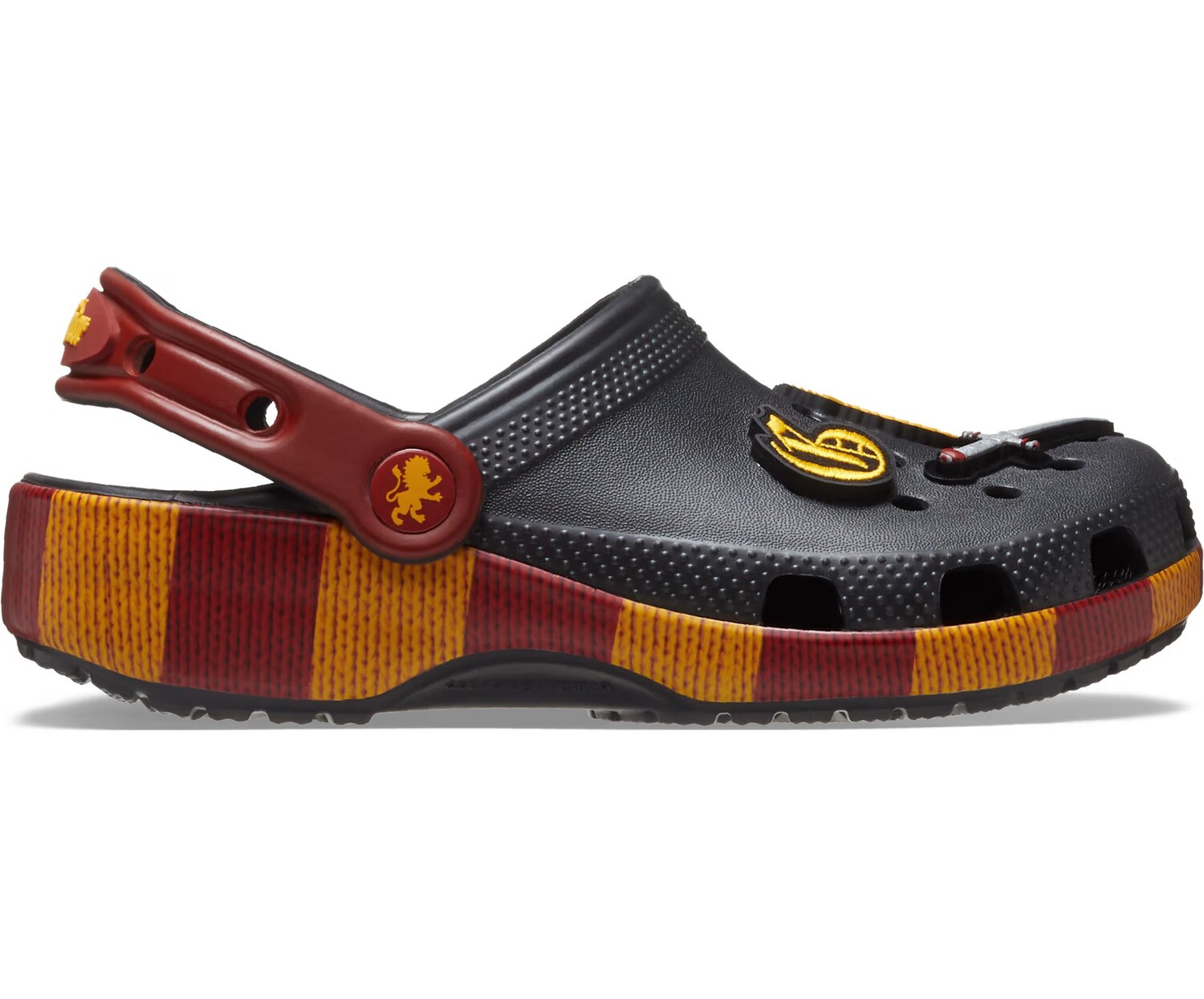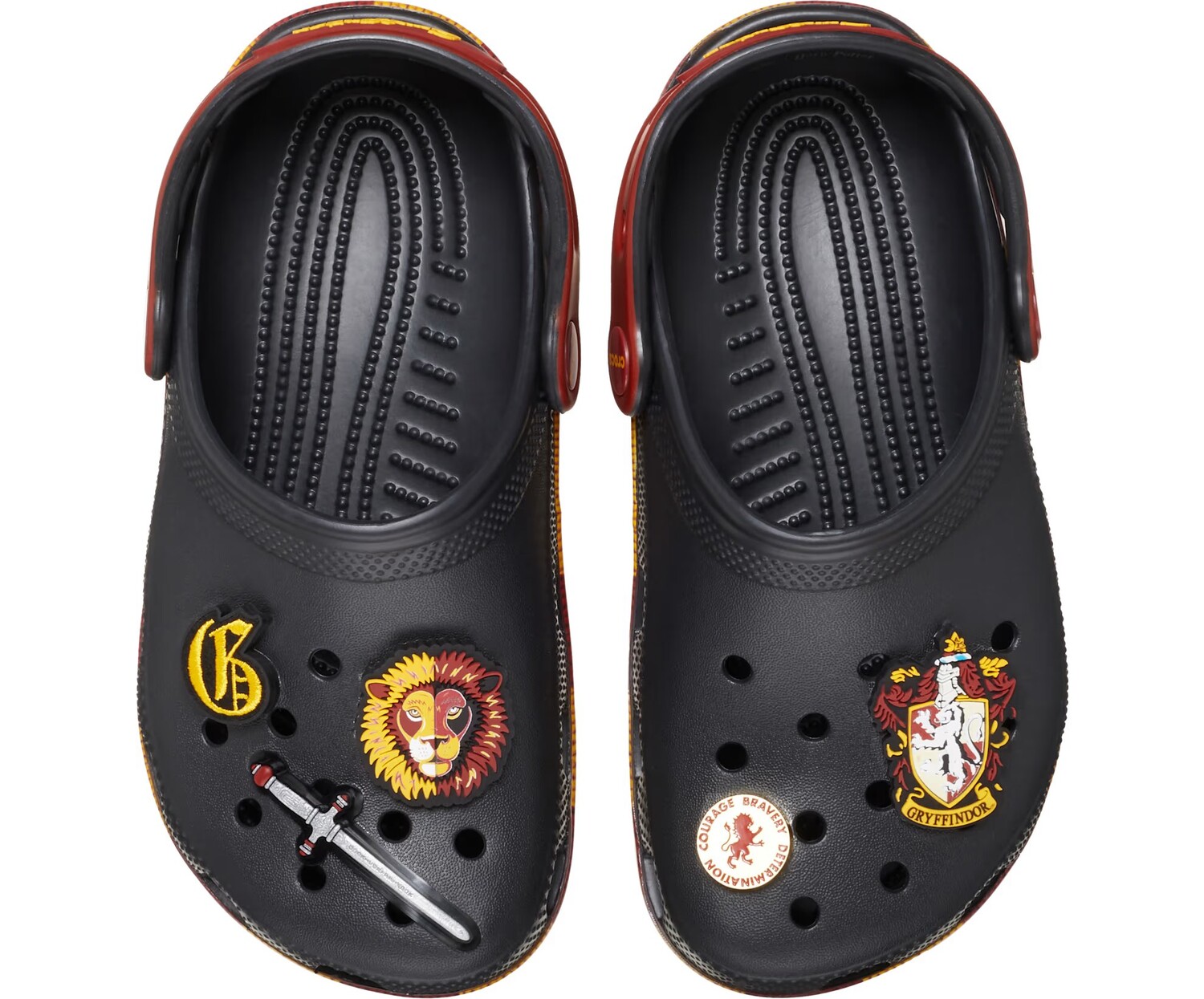 Решительность. Мужественность. Отвага. Покажите свою гордость за Гриффиндор в классических клогах с принтованной подошвой, вдохновленной красно-золотым шарфом Дома, и эксклюзивными брелоками Jibbitz.