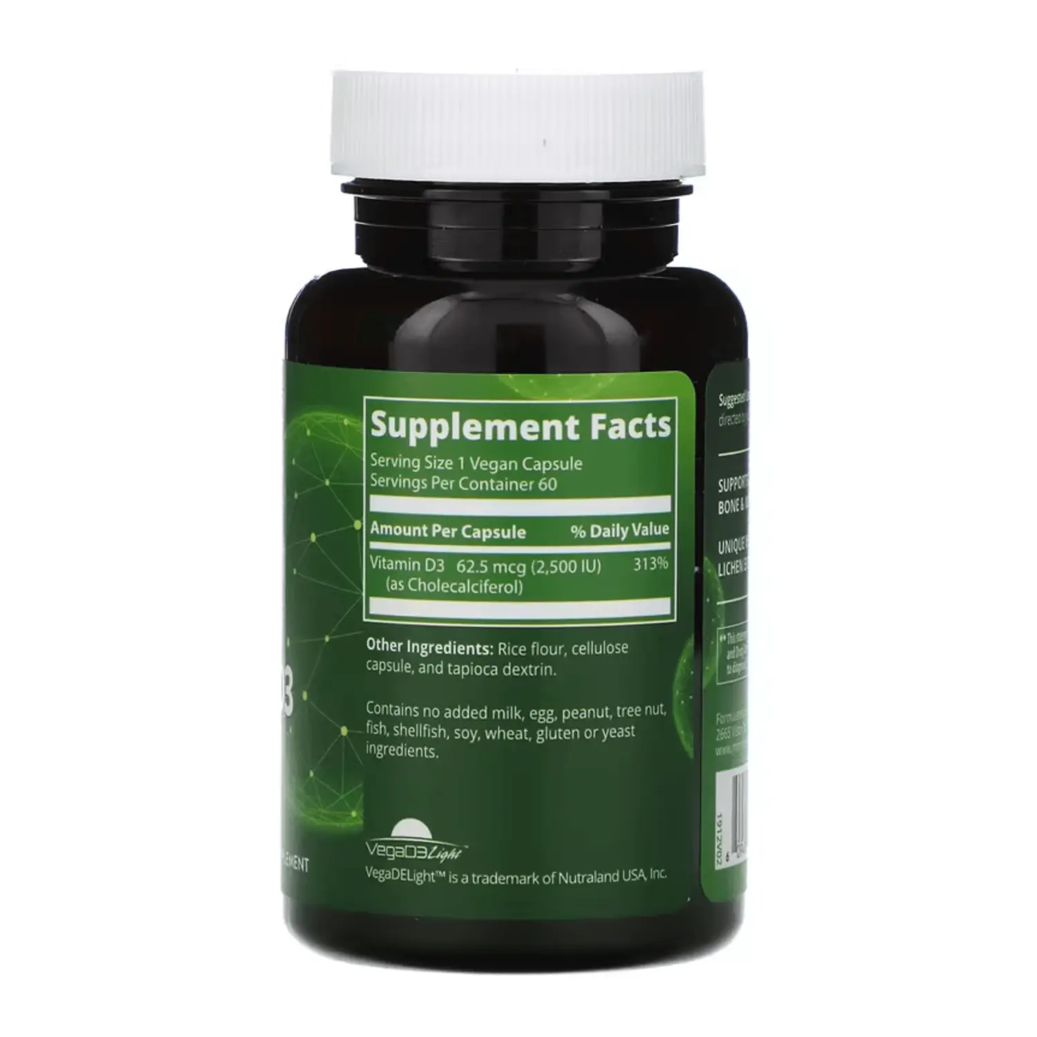 Поддерживает усвоение кальция, здоровье костей и иммунитета. Уникальный веганский витамин D3 из экстракта лишайника.