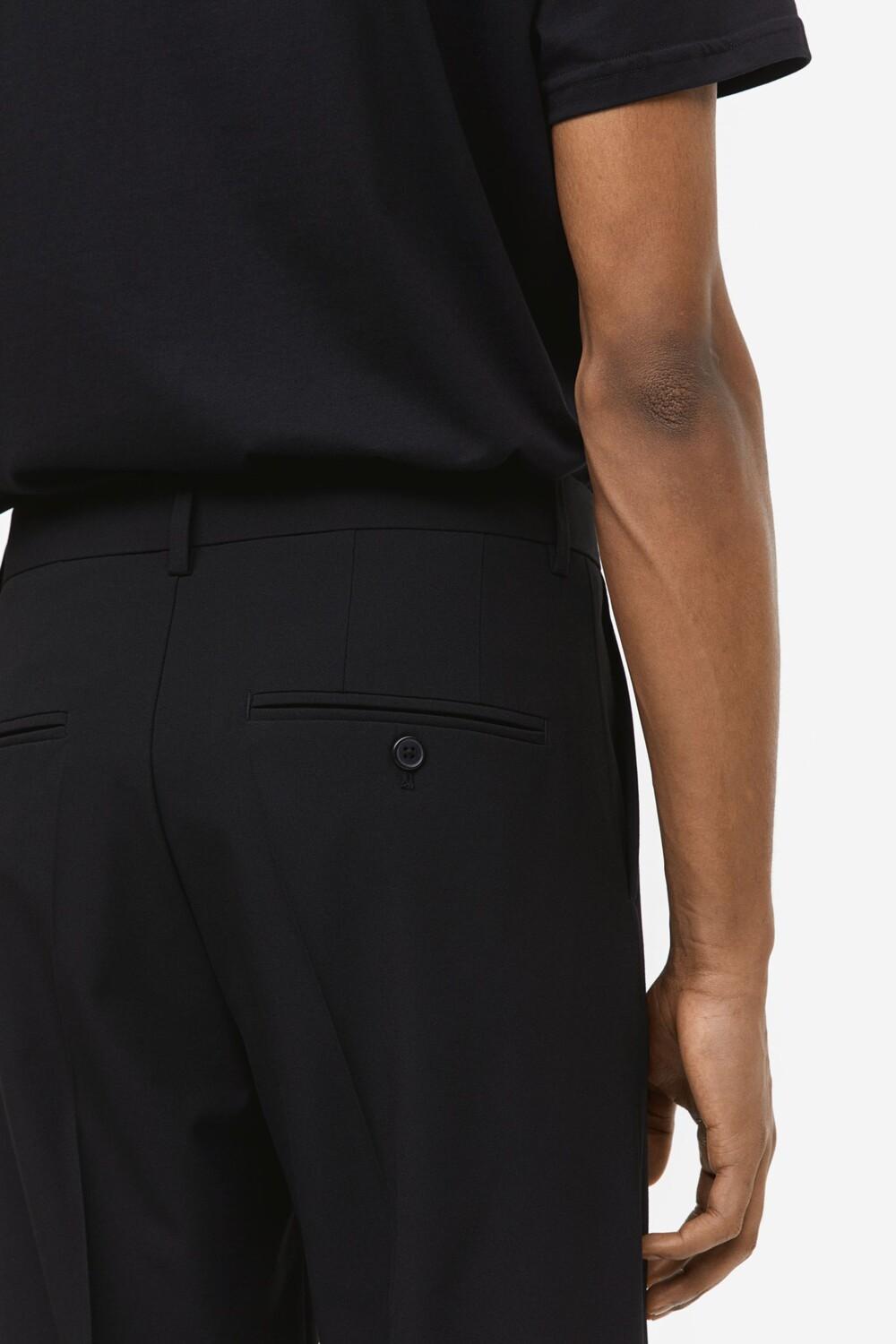 Узкие брюки из твила. Потайная застежка на крючок на талии и ширинку на молнии. Боковые карманы и прорезные задние карманы с пуговицей.