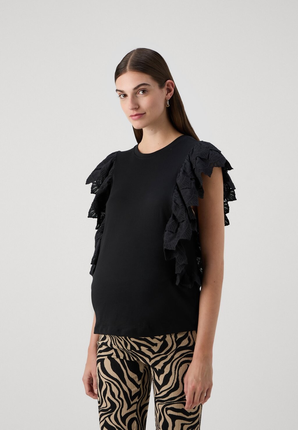 Футболка с набивным рисунком OLMBETTY LIFE FRILL ONLY MATERNITY, черный