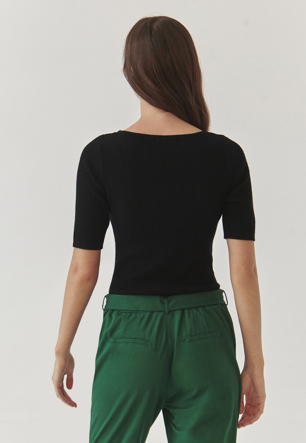 Вырез: Глубокий круглый вырез.