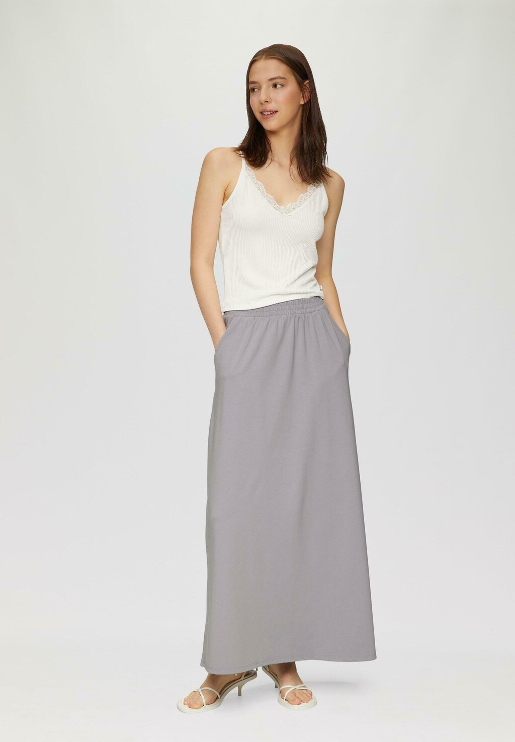 Юбка макси IN HIGH RISE MIT ELASTISCHEM BUND QS, светло-серый 3 545₽
