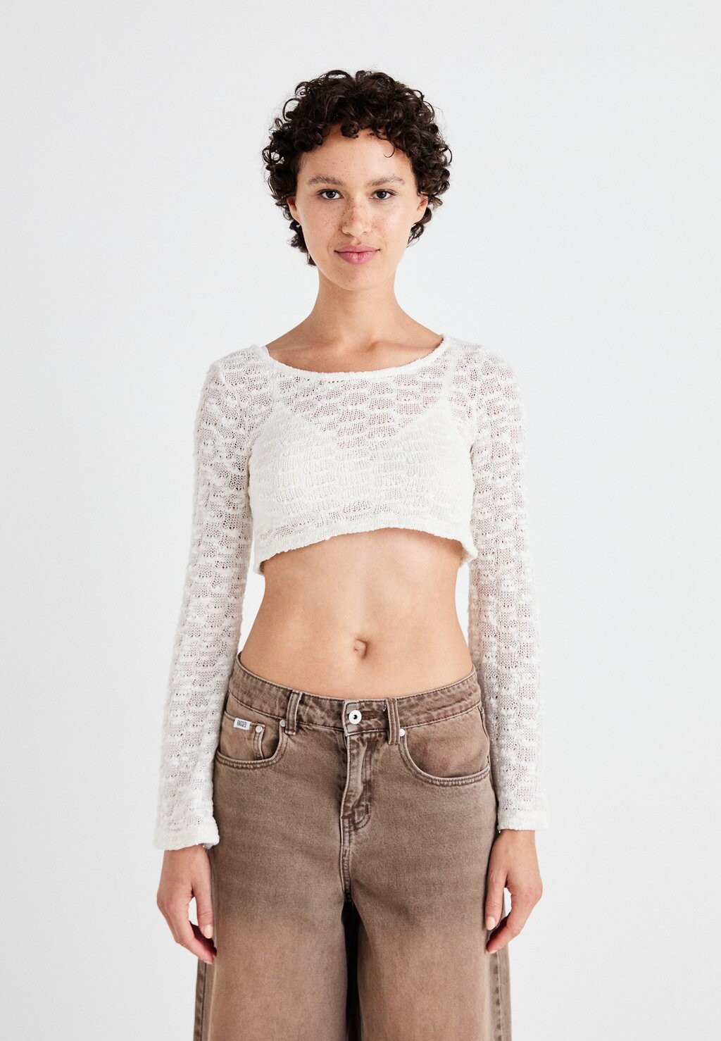 Вязаный свитер NMREMUS U NECK BELLSLEEVE Noisy May, белый